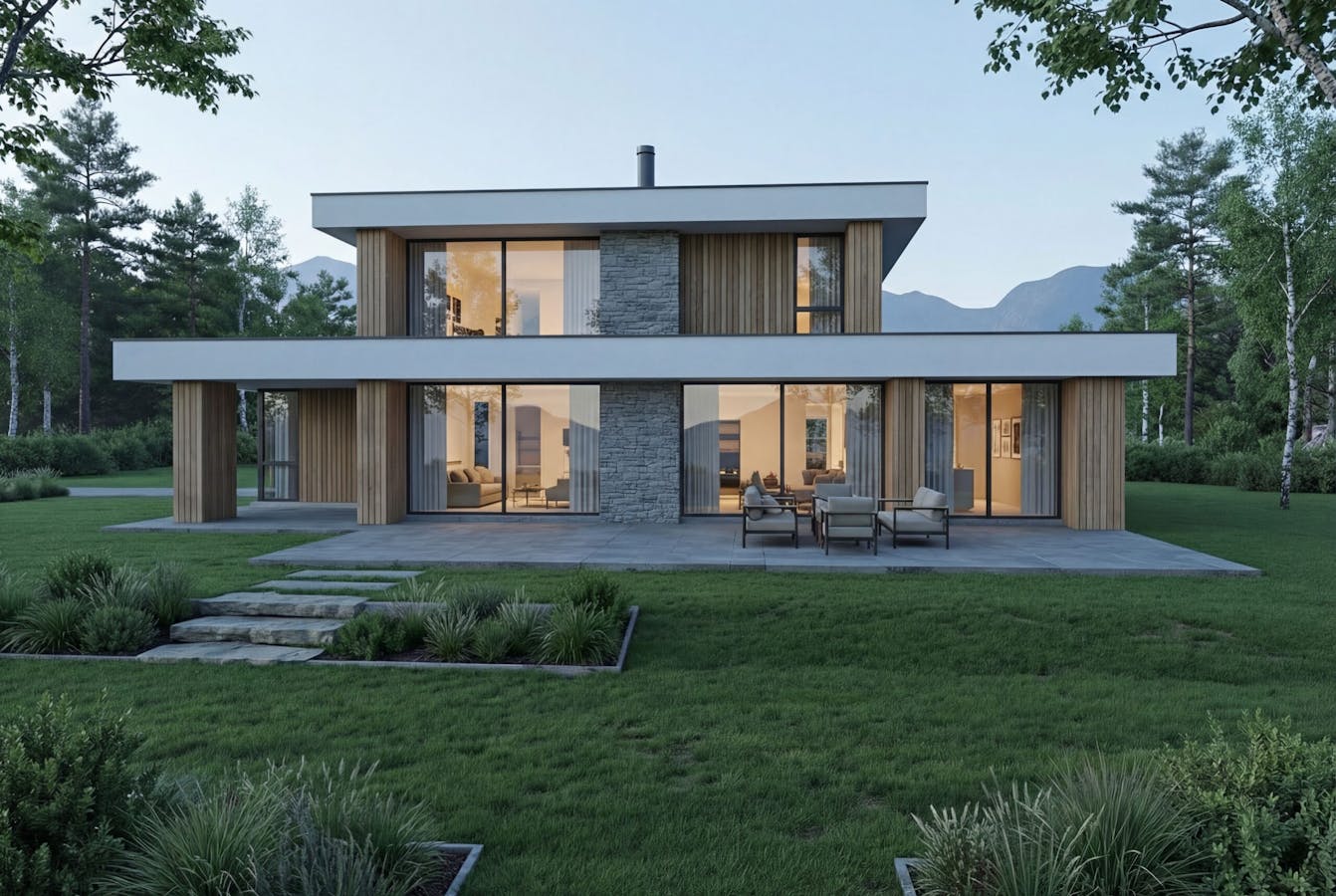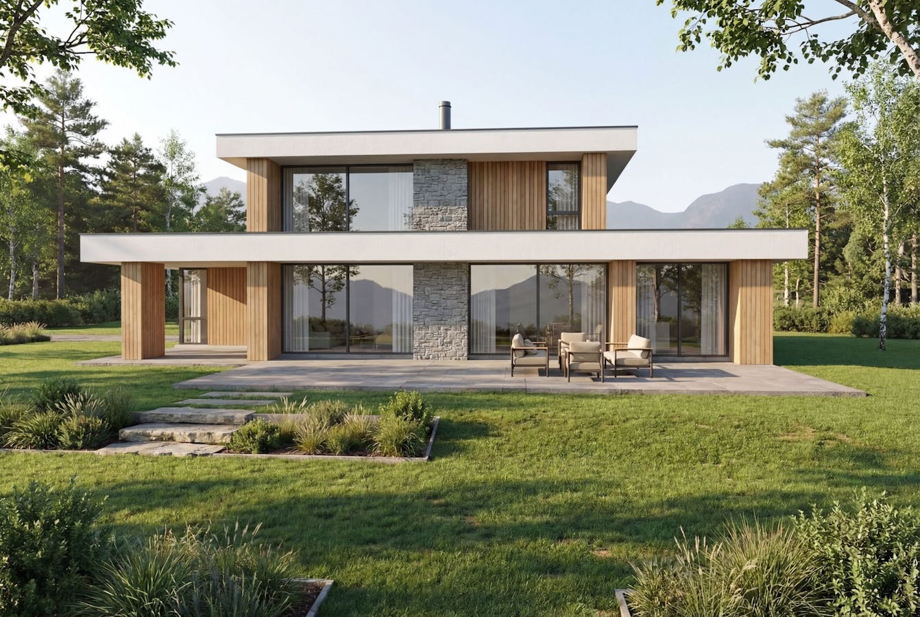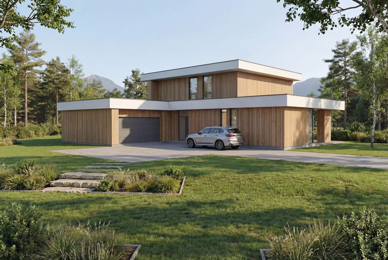 U-5040 er en moderne funkisbolig over to plan, med fleksibel planløsning som passer både familier og par i ulike livsfaser. Store vindusflater gir rikelig med dagslys, mens takoverbygg skaper lune uteplasser som forlenger utesesongen.